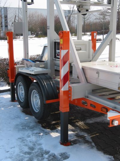 Eine Stabilisierung des Fahrzeuges oder des Trailers ist für den störungsfreien Betrieb des mobilen Systems unbedingt erforderlich. Im Einsatz ist eine schnelle Betriebsbereitschaft des Systems am Zielort eine häufige und priorisierte Anforderung.